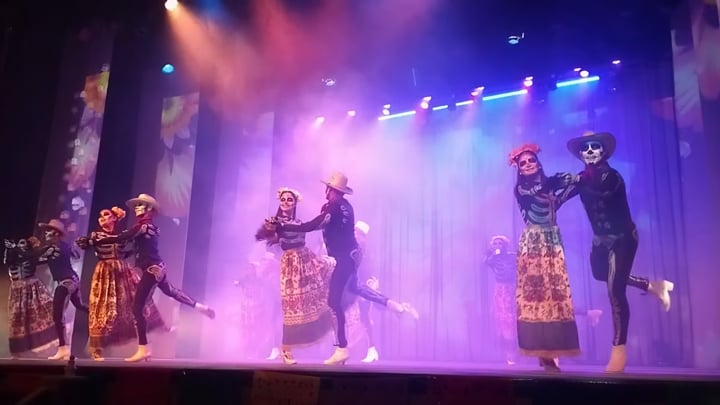 モレーロス劇場では、音楽、ダンス、詩、カラフルな衣装が融合し、死を悲しむのではなく生命を讃えるメキシコの精神を表現します。
